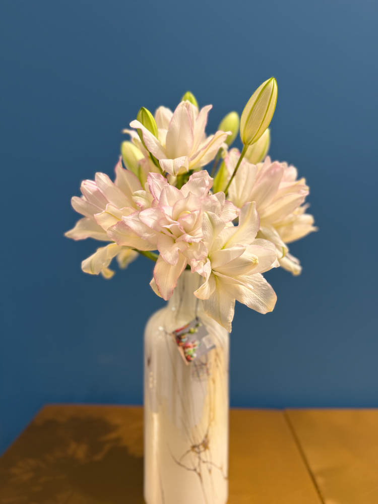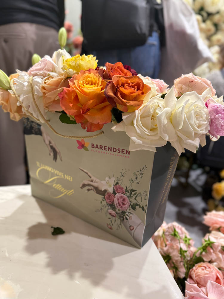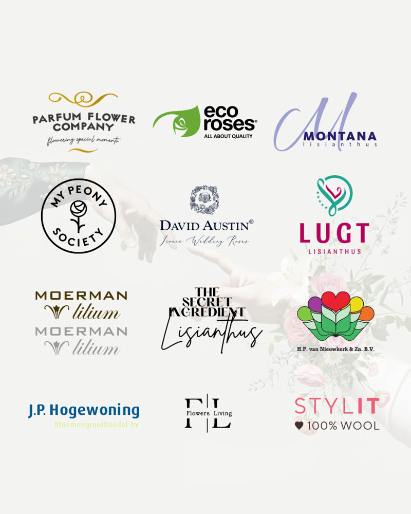 Wir arbeiteten eng mit einer großartigen Gruppe von Züchtern zusammen, die ihre Blumen für dieses Event zur Verfügung stellten: Parfum Flower Company, Moerman Lilium, My Peony, Lugt Lianthus, HP van Nieuwkerk, Hogewoning, Ecoroses und Montana Lianthus. Zudem erhielten wir wunderschöne Materialien für die Goodie-Bags von David Austin, Lianthus.nl und Lehner Wolle. Die Vasen von Fidrio rundeten das Gesamtbild ab.