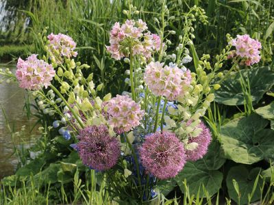 Alliums are beautiful flower bulbs. It is a large group of plants, also known as ‘sierui’ (‘ornamental onion’) or garlic. There is a reason we in the Netherlands mainly use the name 'sierui'. The allium is related to the onion and you can smell that. If you cut the stem diagonally and place it in the vase, you can smell the juice of the flower that smells like onions. It is therefore better not to place strongly scented alliums in a restaurant in a vase.