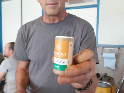 The mites are "released" in the greenhouse in a different way. Koppert has developed a wonderful system, tailor-made for every grower. This "organic cart" has been adapted to Feiko's greenhouses. Large fans are attached to this cart, which then blow the other biological control through the greenhouse, so that it spreads over the crop. In the past, everything had to be spread manually, which is now a thing of the past with the advent of this system.