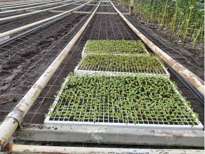 Breeder Evanthia breeds the Celosias and produces the seed. The seed is first grown into cuttings of about six centimeters. These tiny plants then go to Feiko, who then immediately places them in the soil. The planting of the cuttings is all done by hand; the cuttings are fragile and can be damaged quickly.