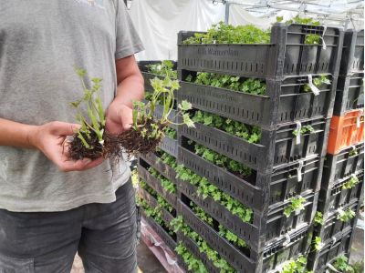 After the Delpinium season (in November), the Delphinium plants are lifted, cleaned and stored in a large freezer. Delphinium is a perennial, a hardy plant and the frost stops the growth process. By removing the plants from the freezer in different phases, Marcel can plant in different periods. This allows him to produce continuously from May to November and to be a stable factor in the market.