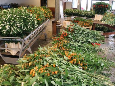 The flowers are available in two ways. Unbranched (arch or feather shape) and branched (cluster shape). The brothers grow both; now 100% branched, 50% feather and 50% branched around Christmas. They deliver these in three different categories of flower screen length; a flower screen of approximately 30, 20 and 10 centimeters respectively. The branches are delivered in water in bunches of 10 pieces.