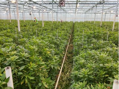 The cultivation method of the Florinca is the same as that of the Alstroemeria. The biggest difference is that the flowers are riper and the middle flower is removed from the Florinca, just before it is picked.