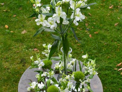 Trends change, also in flowers. Florinca is the improved version of the Alstresia, which was put on the market 20 years ago. They belong to the Alstroemeria category, but Onno would prefer not to use this name. Alstroemeria really has a "bouquet image", while the Florinca fits in perfectly with the modern style of today. The inflorescence is very different and the flowers have no pistil or stamens. This makes her extremely suitable for use in bridal work, both in corsages and in a lovely bouquet.