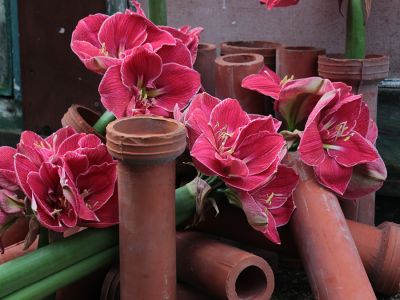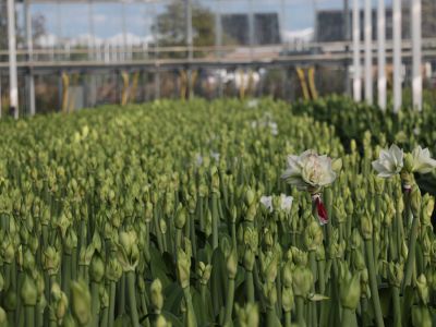 The Amaryllis bulbs are put on large beds with a tempex insulating layer containing clay granules as a cultivation substrate. The first flowers of the season will be cut in September. The peak lasts about five to six weeks, starting November 10 until Christmas.