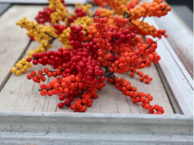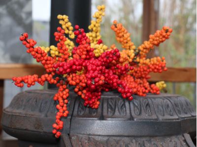 Ilex verticillata "Magical Daydream"; also a beautiful full branch with a lot of volume in a warm orange color. The "Magical Daydream" is very similar in color to the Wintergold, but the branches of the Daydream are somewhat more uniform.