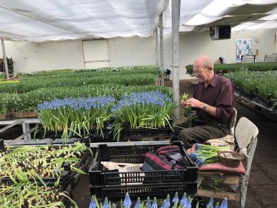 Koen has been growing Muscari for about 30 years. He started working as an employee for a grower who cultivated Muscari. He himself started officially 20 years ago. He grows Muscari from January until the end of April. In the summer months he has Zinnias in the greenhouse and outside he grows Cypresses.