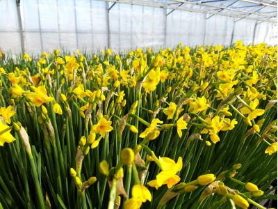 Hans brings his carefully selected quality products (lots of flowers on a stem) on the market with steadfast regularity and continuity. The daffodils are grown in the greenhouse. All other products, he grows outside. The daffodils from the Tazetta group are sensitive to frost and need protection in the ground in winter.