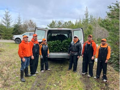 They do not cut Salal, but break off the branches, and bunches are formed, as a salable item, as they pluck. Our pickers pick on land owned or managed by CFG to avoid over-harvesting.”
