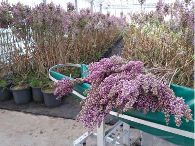When the greenhouse is empty, the shrubs are pruned and are moved outside again. When the production season is over (early May), the shrubs are planted back onto the fields and skip a production year. However, they are pruned after the first year. These branches can be used to graft on rootstocks.