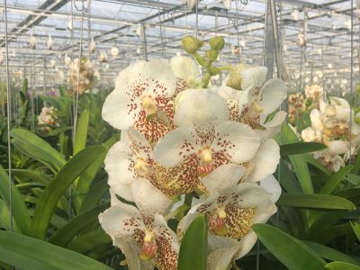 The company has both young and old plants. The oldest plants are around 20 years old. If a plant is too old, the quality of the flowers decreases. Then the choice is made to dispose of these plants. A plant produces an average of 2 to 3 branches per year; this is different per species. While you can controle the production of many flowers by changing the climate, this is very difficult at Vanda's. There are small adjustments that can be made, but you can't predict the results. It is therefore difficult to predict the number of branches of a certain species or when they will be ready which makes it a challenge to do any long-term planning.
