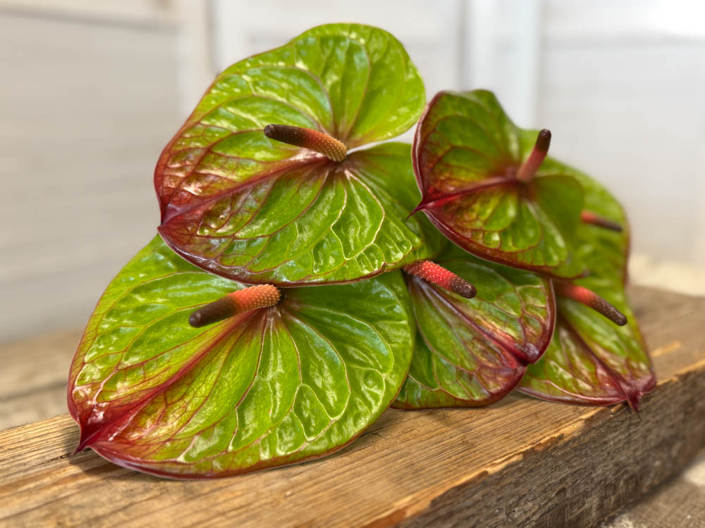 The cut anthurium Absolute combines a fresh green tone with a red tip that flows into the veins, creating an elegant and luxurious contrast. Ideal for florists looking for a durable, eye-catching flower for high-end arrangements. Absolute has a vase life of over 40 days, making it a reliable choice for long-lasting displays.