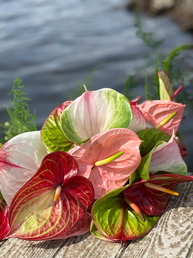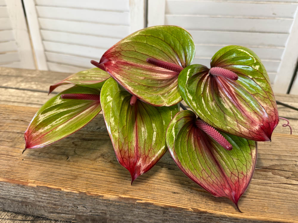 Since 2025, the cut anthurium Caribean has been added to the Anthogether assortment. With its deep red spathe and vibrant green veins, it is ideal for florists seeking a tropical flower with character and refinement. Caribean reflects craftsmanship, adventure and passion for the trade, fitting perfectly into both modern and tropical arrangements.
