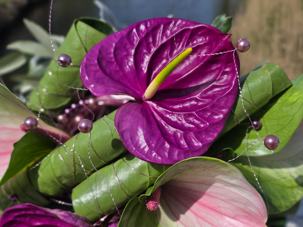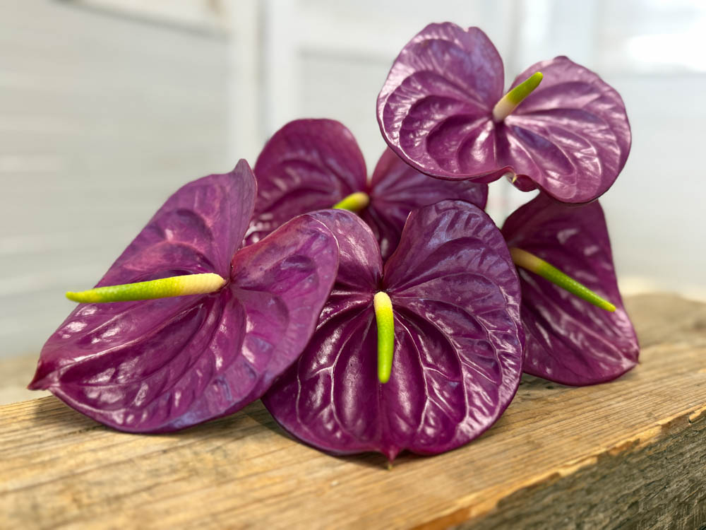 The purple cut anthurium Impreza brings innovation to any bouquet with its stylish colour and heart-shaped form. With stems of 60 to 70 cm and a vase life of at least three weeks, Impreza is a true eye-catcher for florists seeking length, quality and durability. It is also more tolerant of cold during transport (up to 48 hours) than many other anthuriums.