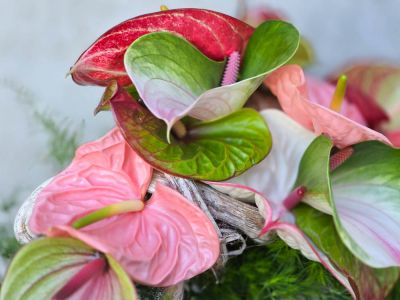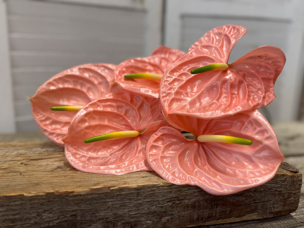 Anthuriums are known for their heart shape, but some varieties have a cup-like form. This is what makes the light pink Alero so unique. Available in small and medium sizes with relatively long stems, its soft pink tone makes it easy to combine with other colours in a wide range of bouquets.