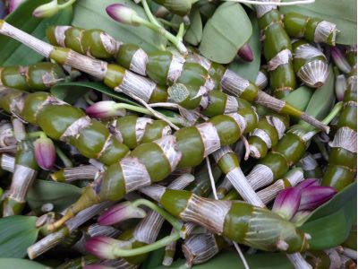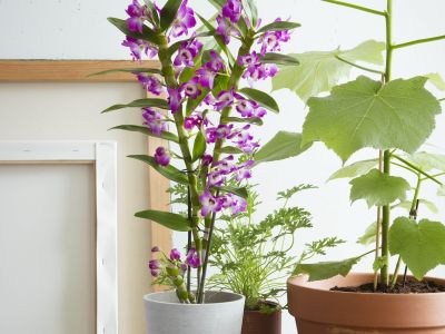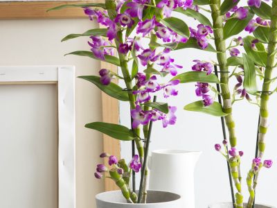 The Dendrobium nobilé is originally from Asia and Japan, where it grows on the trees like an epiphyte. It distinguishes itself from other orchid varieties by its special inflorescence. Most orchids flower at the top of the branch but the Dendrobium nobilé forms flower clusters in the armpits of the leaf. This means that it blooms over the entire length of the plant.