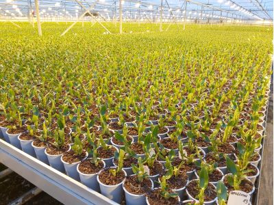 The plants are grown in the first phase of cultivation. The intention is that the plant produces shoots, where the flower will arrive later. The small plants arrive at Wooning Orchids as a cutting or as a plant in a laboratory container. These plants are repotted in a larger pot with coconut spead. Kokospead has the advantage that it is a good moisture regulator and most importantly; the pot worm cannot get through. Pot worms are a serious scourge for some orchid varieties, they affect the roots of the plant, so that the growth of the plant is clearly lagging behind. This animal is also difficult to combat, so preventing is better than curing in this case!