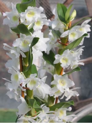 The Dendrobium nobilé flowers naturally in February. In March, after it stops flowering, the plant would normally drop its leaves. This is how the plant prepares for the warm period that is coming. It is a challenge for the grower to grow plants that will not drop the leaves but will stay green. One variety is more susceptible to this than another, but in fact it is not natural for a Dendrobium not to release its leaves.