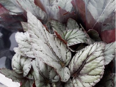 The Begonia Rex is known as the leaf begonia. The word "rex" is translated from the Latin "king". These Begonias have different leaf motifs in different colors, but no flowers. They come with pink, green, red and even silvery leaves, in various combinations and patterns. Curly leaves or hairy leaves are also possible. At Berghoef Plants, 14 different varieties are currently grown under their own trade name "Beleaf". The Arctic Breeze in particular caught our attention; a beautiful full plant with beautiful silver-colored pointed leaves with a clearly visible vein. The top layer even seems to have a bit of a metallic sheen to it; very special. The leaf begonias, and in particular this Arctic Breeze, fit perfectly with the current trend, in which a lot of attention is paid to beautiful tropical plant species with special leaves. The gray, metallic top is therefore a real eye-catcher.