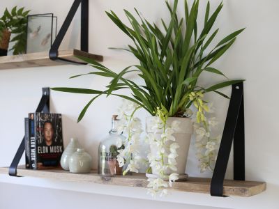 Trees from LZ Orchidee is a very creative person. In addition to the work in the nursery, she also gives workshops in the designated area during the winter months. Flower and mosaic workshops are held here. This beautiful large room, in a homely atmosphere, provides a lot of peace and inspiration. With her creativity, she is also responsible for the webshop. It is also important that beautiful photos and atmospheric images are used for a satisfying and fresh result. The webshop is therefore completely up to date with beautiful photos and lots of information about the Cymbidium. But the Leo and Trees are also very creative together. They developed a special construction with rings to hang their plants for a trade show, making them stand out and showing them at their best. These rings are now also for sale .