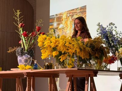 On Wednesday, an inspiring programme of demonstrations was on the agenda. Well-known names from the international floral world gave presentations, including Jasmine Floral, Gregor Lersch, Bryce Heyworth from September Studio, Studio Lilo, Matagalán Plantae and Victoria Clausen. This year’s theme was primary colours, with yellow, blue and red as the foundation. There was also attention for innovative and sustainable solutions, such as Oshun Pouch and compostable flower tubes made from bagasse, a plant-based by-product from sugarcane.