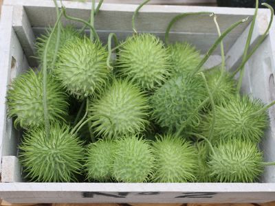 The biggest challenge is to grow a nice hard ornamental fruit that has a special color and a high decorative value. Some varieties can be dried after which you can keep them for months. The Solanum, on the other hand, is a bit more fragile and has a shorter shelf life. With the Cucumis, the browner varieties have the longest shelf life, but the greener varieties are much more sought after.