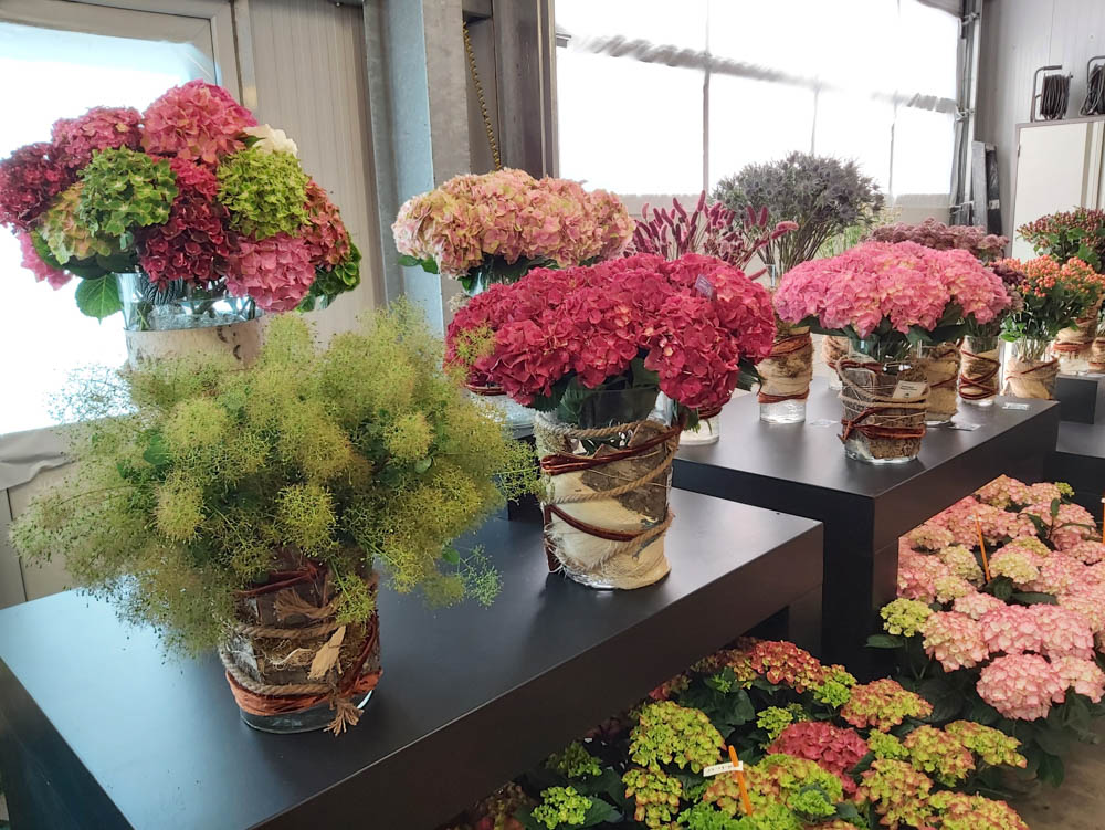 Various types of hydrangea are grown on five hectares. About 70% consists of the Verena and Schneeball varieties. The market demand for these varieties is high and ensures stability within the company. The other 30% consists of real niche varieties, distinctive for florists and designers and suitable for the high segment.