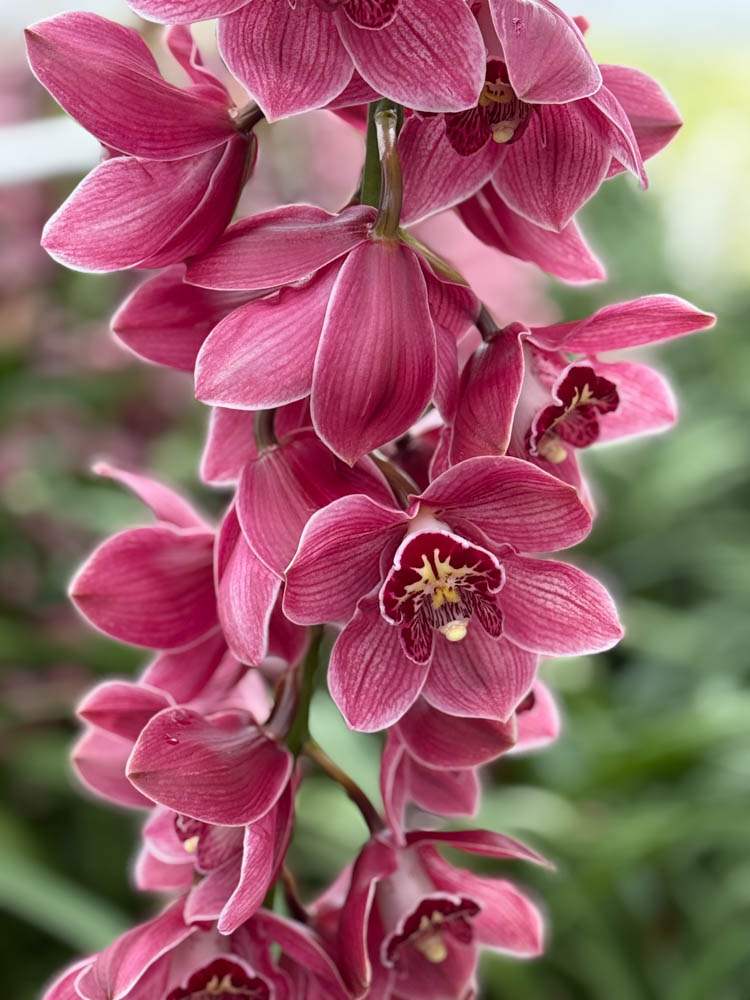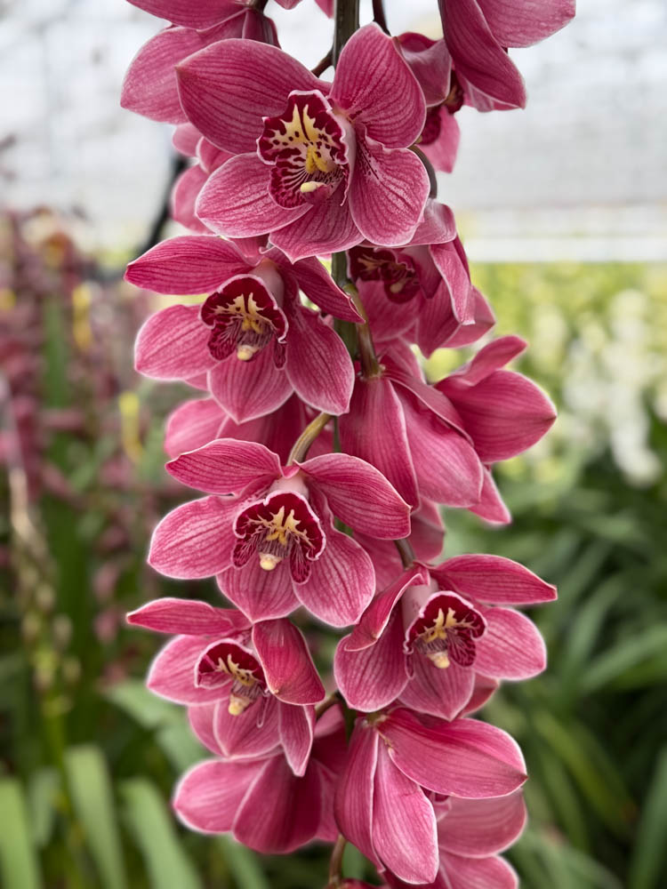 Cymbidiums komen van oorsprong uit de bergen van Azië, maar de varianten zoals we die nu kennen, zijn volledig doorontwikkeld op sierwaarde. Het telen ervan vraagt om vakmanschap én geduld. Nieuwe planten worden vermeerderd uit eigen moederplanten en doen er vijf jaar over voordat ze hun eerste bloem geven. Bij Kwekerij Koningshof groeien ze de eerste jaren biologisch in een aparte opkweekkas.