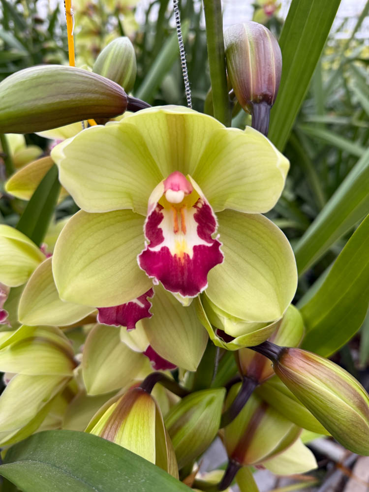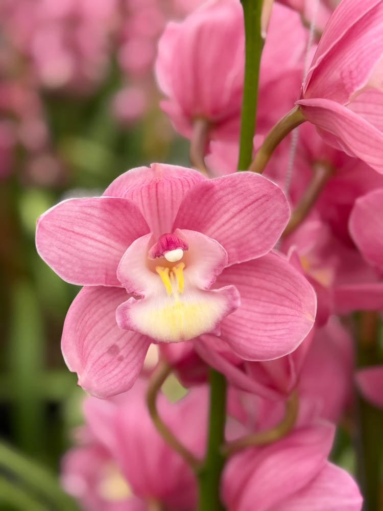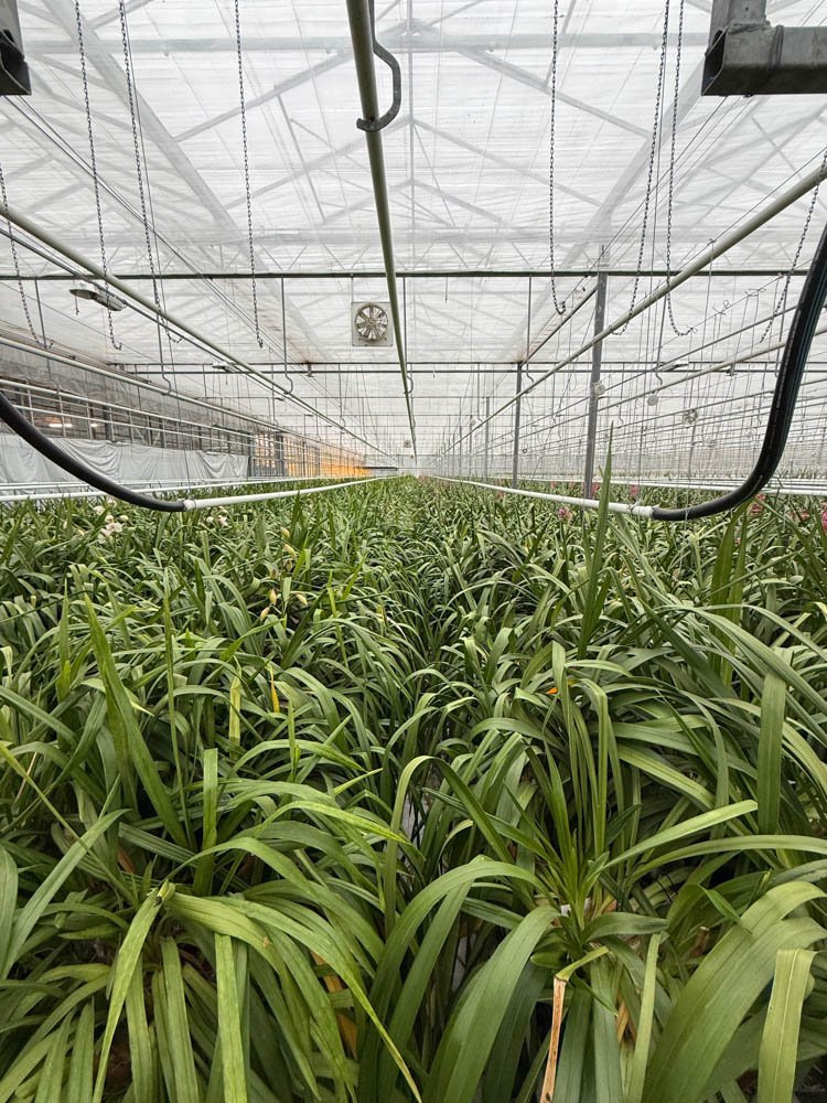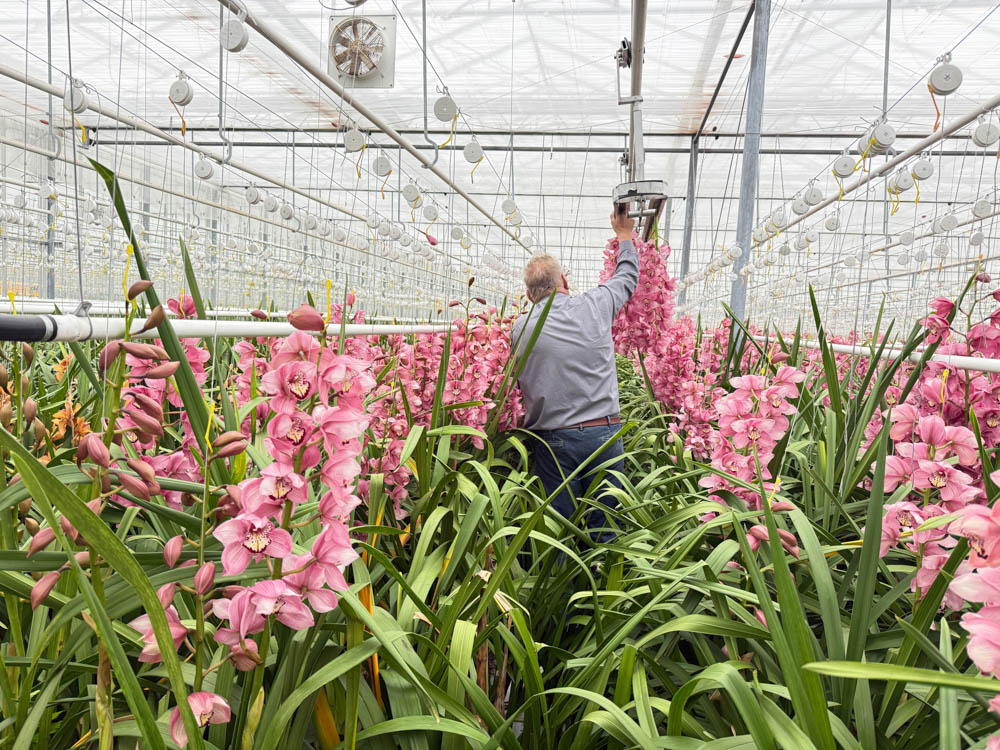 De cymbidium bloeit slechts één keer per jaar. Dat maakt de teelt risicovol én bijzonder. De bloei vindt plaats in de koude periode. Ook daarna, in de herstelperiode na de oogst, blijven de planten koud. Dit zorgt ervoor dat de plant energie en suikers opslaat in de bollen. In de warmere maanden groeit de plant weer en vormt hij nieuw blad voor het volgende jaar. Alles aan deze teelt is handwerk: van het opbinden zodra de eerste bloemen verschijnen, tot het oogsten en sorteren. Bij Koningshof wordt gemiddeld acht jaar van een plant geoogst, maar sommige rassen blijven nog jaren langer produceren.