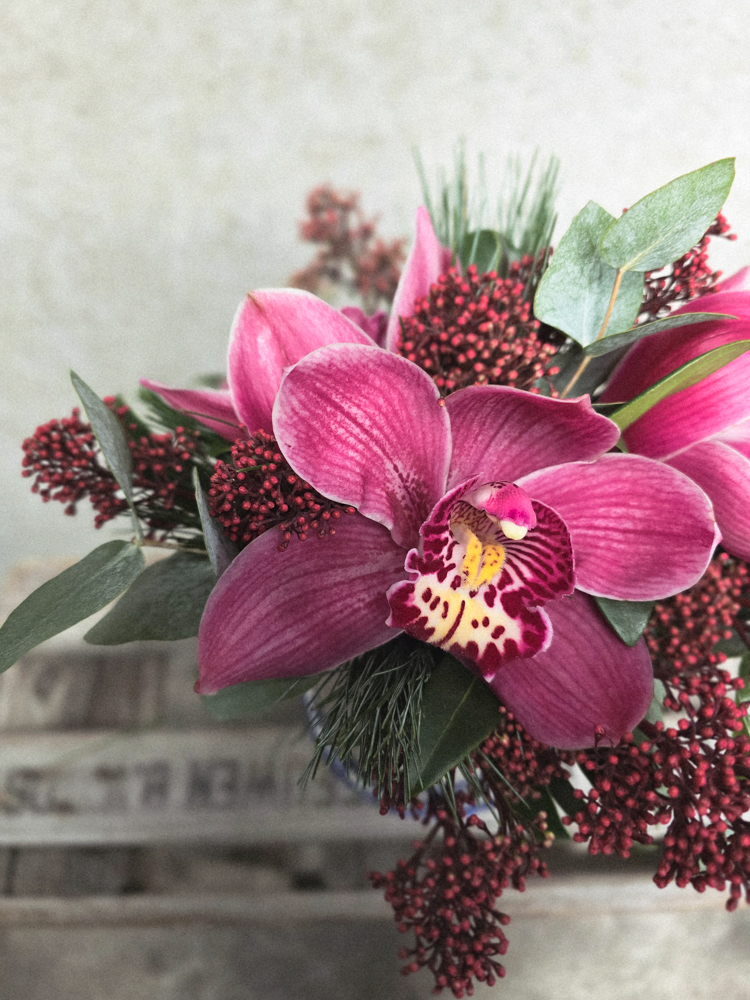 De Big Berry komt oorspronkelijk uit Nieuw-Zeeland en is een exclusief ras dat door slechts drie kwekers wordt geteeld. Wat direct opvalt, is de diepe, warme kleur met de typerende gele lip. De zware, stevige takken zijn ideaal voor grote vazen, als solist of in royale boeketten. Losse bloemen lenen zich perfect voor kransen of compacte arrangementen. Niet alleen mooi voor kerst, maar ook zeer geschikt voor zakelijke decoratie of events.