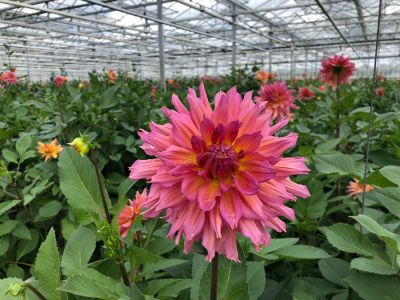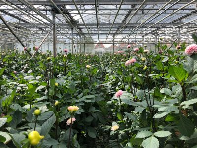 Niet alle soorten dahlia’s die buiten groeien zijn ook geschikt om binnen te telen. Het is voornamelijk van belang dat de takken mooi dik en stevig zijn. De meeste soorten krijgen deze sterke stelen alleen als ze buiten in de volle grond staan. Hier kunnen ze alle voedingsstoffen uit de grond halen en schijnt de zon op de stelen. H&BR van den Bosch teelt een assortiment dahlia’s op 18.000 m² binnen in de kassen dat hiervoor geschikt is. Op dit moment worden er zeven verschillende soorten geteeld. Door klimaatbeheersing in de kassen is de productie van de bloemen tot in de details te sturen. Zo werden er in het seizoen 2018 bijna 900.000 dahlia’s gesneden!