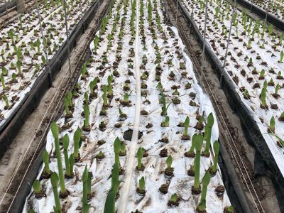 Tijdens ons bezoek hebben wij twee van de drie tuinen kunnen bekijken. De één iets moderner dan de ander, maar beide ontzettend groot en schoon. Bij een van de twee tuinen hebben zij een nieuwe machine die ze gebruiken voor het sorteren en inpakken van de bloemen. Deze machine hebben ze zelf samen met de leverancier speciaal ontworpen voor de Amaryllisteelt en dankzij deze machine is het werk een stuk lichter geworden.