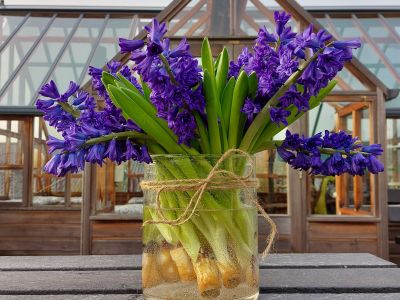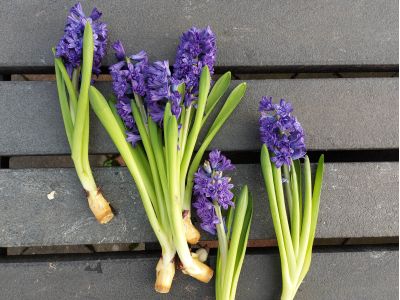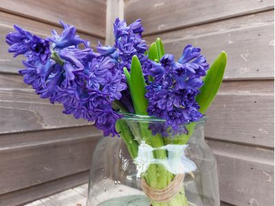 Als de bloemen worden gebost, worden ze eerst ontdaan van hun bol. Alleen het binnenste gedeelte van de bol blijft aan de hyacint zitten. Het gedeelte dat de bloemisten/consumenten eigenlijk altijd weer eraf halen. Dat is juist verkeerd! Dat kleine stukje bol zorgt ervoor dat de hyacint goed zijn water op kan nemen op de vaas. Hyacinten kunnen niet zo goed samen met andere bloemen in een vaas. Uit de bol komt namelijk veel slijm en dat zorgt ervoor dat andere bloemen minder goed water op kunnen nemen.