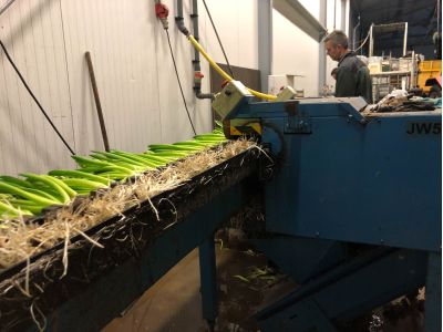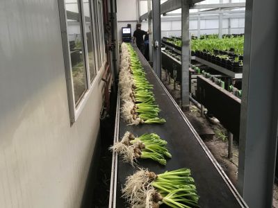 Omdat er geen licht is in de koelcel, is het blad van de hyacinten nog helemaal geel, dit kleurt in de kas helemaal bij naar mooi groen, fris blad. Als de hyacinten zo’n 30 cm zijn, worden ze geoogst; dit duurt gemiddeld 7 dagen.