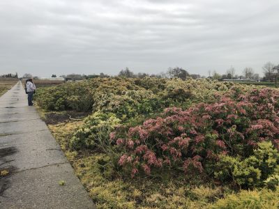 Frank, de zoon van Nico en Annette, nam ons mee in de auto naar de verschillende stukken land waar de producten groeien. Al hun gewassen worden namelijk buiten geteeld. Gelukkig kregen wij de rondleiding in de auto, aangezien wij tijdens ons bezoek te maken hadden met ons typische Nederlandse regenweer. Het rijden langs deze golvende, gekleurde pierisvelden, gaf ons echt een vakantie gevoel. Alsof je door een prachtig buitenlands landschap rijdt. Veel van deze pierisstruiken zijn wel 20 jaar oud en er wordt nog steeds van geoogst.