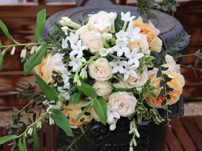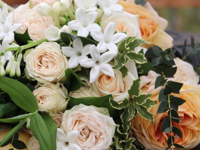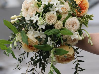 “Puur, zuiver wit, maagdelijk of een nieuw begin”, zijn zomaar beschrijvingen die Rien Hoogendoorn, mede-eigenaar van kwekerij Alta Nova, geeft aan het meest bekende bruidsbloemetje; de ‘Stephanotis’. Ze groeien in trosjes die opengaan als sterretjes. Eenmaal open geuren ze heerlijk en kleuren ze prachtig bij de glimmende diepgroene blaadjes.