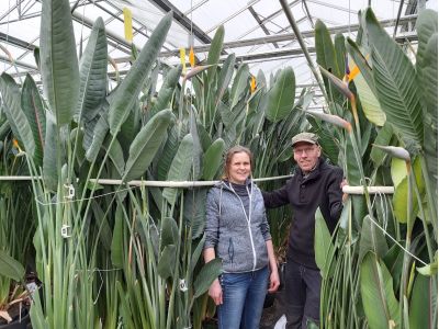 Negen jaar geleden zijn Leo en Marlies verhuisd van Brielle naar Luttelgeest. De Cymbidiumteelt hebben zij achter zich gelaten. De onbekendheid van de Strelitzia sprak hen aan. Kleinschalig, zonder personeel, zijn ze samen de nieuwe uitdaging aangegaan van deze toch wel lastige teelt. Hun motto: ‘Alles wat makkelijk gaat, kan iedereen in het groot toch?’.