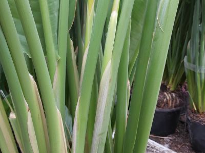 De meeste plantensoorten gaan slap hangen als ze te weinig water krijgen. De Strelitzia gaat hangen als deze te nat is en de kans op steelbreuk is groot als ze te droog zijn. Dit heeft voornamelijk te maken met de opbouw van de steel. De stelen van de Strelitzia zijn hol en bestaan uit allemaal kleine celkamers. De stelen zijn hierdoor flexibel en ijzersterk.