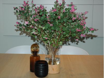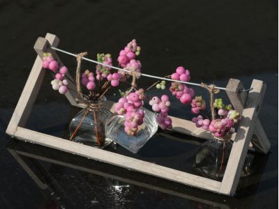 Terwijl het zonnetje nog flink schijnt aan het eind van de zomer, de herfst langzaam haar intrede maakt, zijn ze al volop verkrijgbaar: ‘sneeuwbessen’, zoals wij ze in Nederland noemen. Op de veiling worden ze verhandeld onder de naam ‘Symphoricarpos’. De witte variant is de meest bekende soort. Maar in deze periode heeft nog niet iedereen zin in deze witte ‘sneeuw’ bes, omdat ze toch al wel een beetje een winters gevoel meegeeft. De roze Symphoricarpos is daarom een geweldig alternatief voor iedereen die houdt van bessen, kleur én herfst! Voor deze editie brachten wij een bezoek aan Rik de Werd, eigenaar van De Werd Sierteelt. Een kweker van allerlei soorten bestakken en andere seizoensproducten!