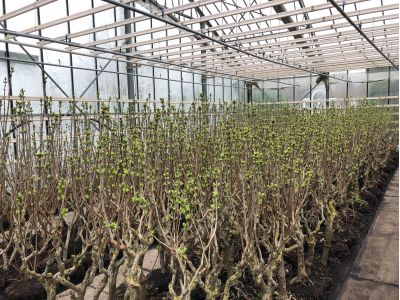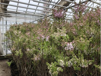 Om seringen te telen moet je een hele lange adem hebben. Het duurt namelijk zeker zes jaar voordat een jonge plant voor de eerste keer de reis kan maken naar de warme seringenkas, om daar vervolgens in bloei getrokken te worden. Een struik van 15 jaar is pas rendabel als je kijkt naar de verrichte arbeid en de opbrengst die deze struik genereert. Het voordeel van een seringenstruik is daarentegen dat ze wel meer dan 100 jaar oud kunnen worden. Hierdoor kunnen de struiken generatie op generatie doorgegeven worden. Jan heeft heel veel bijzondere soorten seringen op kleine schaal. Bijzonder door de bloeiwijze, dubbelbloemig of kleur of juist een bijzonder grote bloemnagel (zo wordt het enkele bloemetje genoemd van de bloemtros) of bijzonder door de sterke geur. Wij lieten onze blik vallen op de Syringa Vulgaris ‘Michel Buchner’, een dubbelbloemige ‘Milka-kleurige’ bloem met een goede houdbaarheid. Je hebt verschillende varianten van Buchner, maar deze soort sprong er met haar kleur écht tussenuit! Dit soort wordt van begin februari tot begin april geteeld. Het soort is lavendelpaars met een blauwe teint erin. De Buchner laat zich helemaal niet makkelijk telen, maar Jan houdt wel van een beetje uitdaging. Hij probeert dan ook soorten te zoeken die moeilijk te telen zijn, maar een mooie kwaliteit hebben. Zo blijf je als specialist onderscheidend!