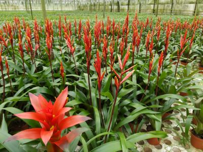 Bromelia’s worden meestal verkocht als potplant. Deze tropische verschijningen zijn zonder pot of als snijbloem ook heel goed te verwerken. Je kunt er de mooiste arrangementen van maken: hangend in een boom, vastgebonden op een stuk schors of gewoon in een boeket. Daarbij zijn ze verkrijgbaar in allerlei vormen en in de meest vrolijke en warme kleuren. Voor een creatieveling biedt deze plant verschrikkelijk veel mogelijkheden. Als snijbloem worden deze tropische bloemen nog niet zo veel gebruikt. Hier zitten nog wel wat haken en ogen aan. Daniël Ottenhof, van kwekerij Thijs Ottenhof, ziet hier wel uitdaging in.
