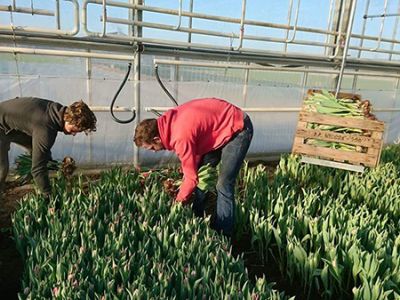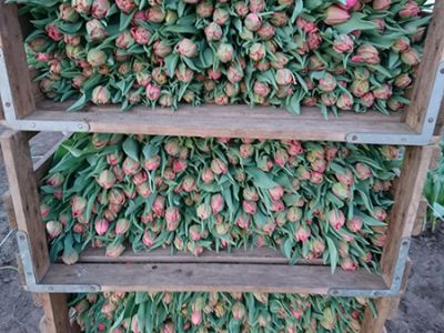 Nadat de tulpen geoogst zijn, wordt de bol verwijderd, de tulpen gebost en verpakt om naar de veiling te gaan.