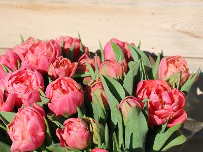 Een zware kwaliteit tulp met een gevulde bloem. Deze pioenbloemige tulp is flink stevig, mooi op staand blad en heeft een prachtig vol roze kleur.