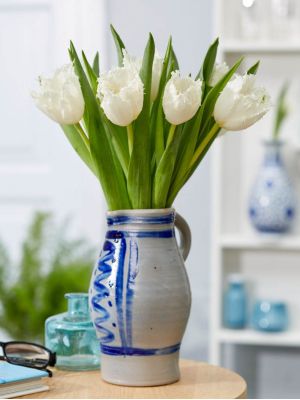 De tulp ‘Cambridge’ behoort tot de groep van gefranjerde tulpen. Opvallend aan deze bijzondere tulpen zijn de fijn gefranjerde randen van de bloembladeren. De meeste gefranjerde tulpen bloeien laat, maar Cambridge is een uitzondering. Dit soort kan vroeg gebroeid worden en bloeit daarom in januari al in de kas. Door haar mooie witte kleur is het echt een aanvulling in het winterassortiment van de bloemist. ‘Cambridge is een mooie lange en zware tulp, haar gefranjerde witte bloemblaadjes maakt deze tulp echt uniek. Het is schitterend om een vaas ‘Cambridge’ tulpen op tafel te hebben, maar ook goed te gebruiken voor rouw- en trouwwerk door de pure witte kleur.
