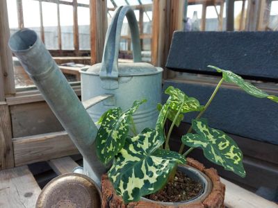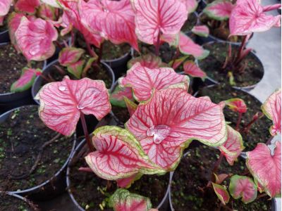 Hoogwaardige kwaliteit producten leveren gaat boven alles. En dat begint bij de Caladium al bij het poten van de knollen. Waar de meeste kwekers één knol per pot poten, start Richplant al met het poten van twee Caladium knollen in een pot. Op deze manier groeit er een mooie compacte, volle plant. Het is afhankelijk van de hoeveelheid licht en de warmte hoe snel de plant groeit. In eerste instantie worden de planten dicht bij elkaar gezet, met een hoge luchtvochtigheid, waardoor er een goede wortelbasis ontstaat.