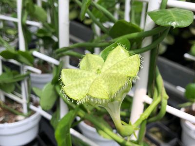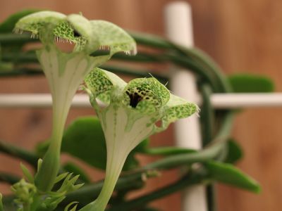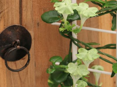 Ceropegia wordt in de volksmond ook wel lantaarnplantje genoemd. Er bestaan wel 200 verschillende Ceropegia soorten. De meeste bekende is de Ceropegia woodii, het hangende lantaarnplantje. Tijdens ons bezoek aan kwekerij Hoogendoorn Stephanotis viel ons oog op een Ceropegia soort met een bloem dat de naam ‘lantaarnplantje’ eer aan doet. De Ceropegia sandersonii wordt ook wel Africaanse Parachuteplant genoemd. Hans vertelde ons alles over deze excentrieke, trendy plant en de uitdaging om dit plantje meer bekendheid te geven.