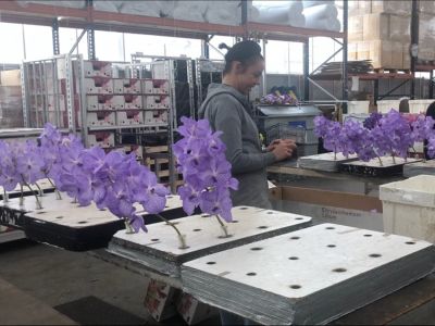 In het bedrijf hangen zowel jonge als oude planten. De oudste planten zijn tegen de 20 jaar oud. Als een plant te oud is, gaat de kwaliteit van de bloemen omlaag. Dan wordt de keuze gemaakt om deze planten weg te doen. Een plant geeft gemiddeld 2 tot 3 takken per jaar; dit is verschillend per soort. Waar je veel bloemen kunt sturen door het klimaat te veranderen, is dit bij Vanda’s erg lastig. Er zijn kleine aanpassingen te maken, maar daar kun je niet op rekenen. Je kunt dus moeilijk voorspellen wanneer je hoeveel verschillende takken hebt van een bepaald soort. Het is dus voor orders op de lange termijn een uitdaging om iets te plannen.