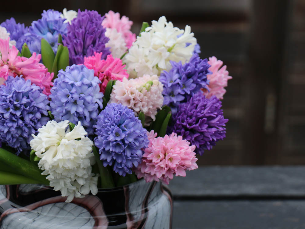 Omdat de stelen droog aangeleverd worden is het belangrijk dat de stelen eerst goed volzuigen met water, voordat ze in de vaas gezet worden. Gebruik een schone vaas en vul deze met koud water. In tegenstelling tot de meeste bloemsoorten, hoeft de hyacint níet aangesneden te worden. Het is belangrijk dat de bolbodem aan de steel blijft zitten. Hier zit nog heel veel voeding in, waardoor de bloem beter ontwikkeld. De steel blijft steviger, de bloemen blijven langer houdbaar en de kleur van de bloemen worden veel intenser. Hyacinten zijn prachtige voorjaarsbloemen, die heel mooi gecombineerd kunnen worden met andere bloemen in een boeket.