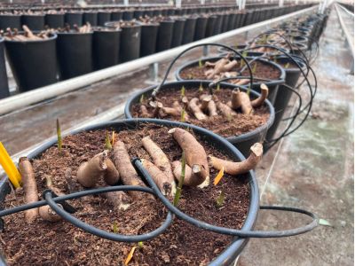 De geoogste takken blijven nog vijf maanden staan. In deze tijd vormt de knol twee nieuwe knollen. Na deze vijf maanden worden de knollen gerooid, gesplitst en geprepareerd om opnieuw te kunnen gebruiken voor de potplanten of de snijbloemen. Op deze manier is Antoine geheel zelfvoorzienend in zijn eigen plantmateriaal.