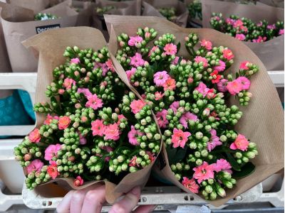 De bloemen worden relatief rijp geoogst, waardoor de bloem meer voeding van de plant mee krijgt en de consument er uiteindelijk langer plezier van heeft. Er zijn twee kleurenlijnen in de markt van de snij Kalanchoë. De ‘Soraya’ serie verkrijgbaar in zes verschillende romantische pasteltinten. En een nieuwe serie die nu nog bestaat uit alleen fel geel, maar die binnenkort uitgebreid wordt met hard oranje. En natuurlijk wordt er door de veredelaar hard gewerkt aan nieuwe kleuren.